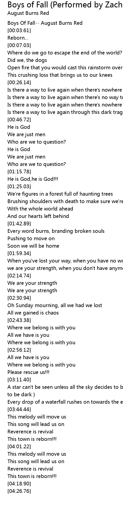 | [00:00.50] | Boys Of Fall-- August Burns Red |