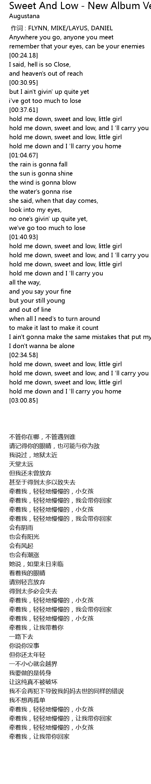| [01:53.67] | hold me down, sweet and low, little girl |