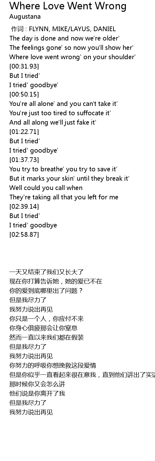 | [00:24.47] | Where love went wrong' on your shoulder' |