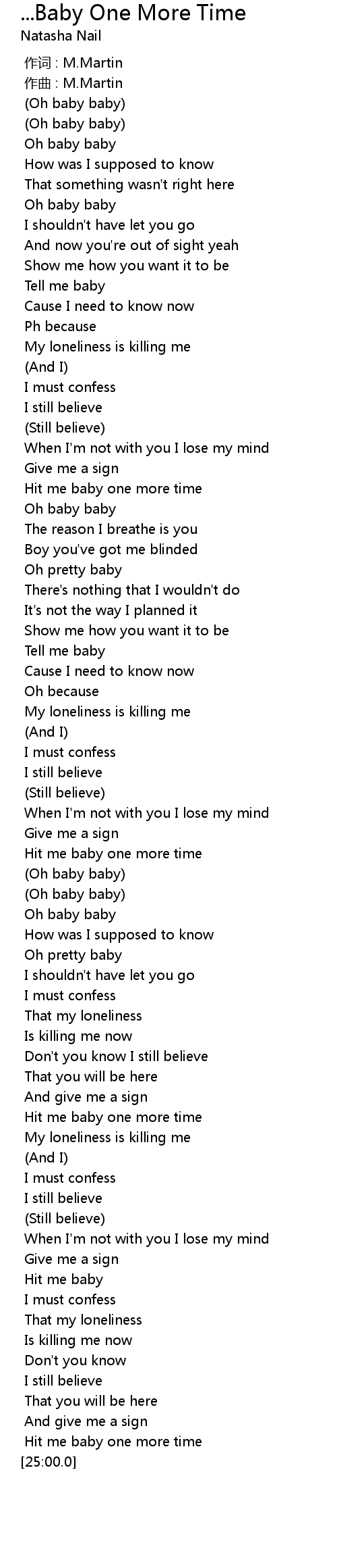 | [01:00.100] | Hit me baby one more time |