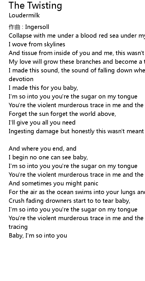 | You' re the violent murderous trace in me and the twisting has begun | |