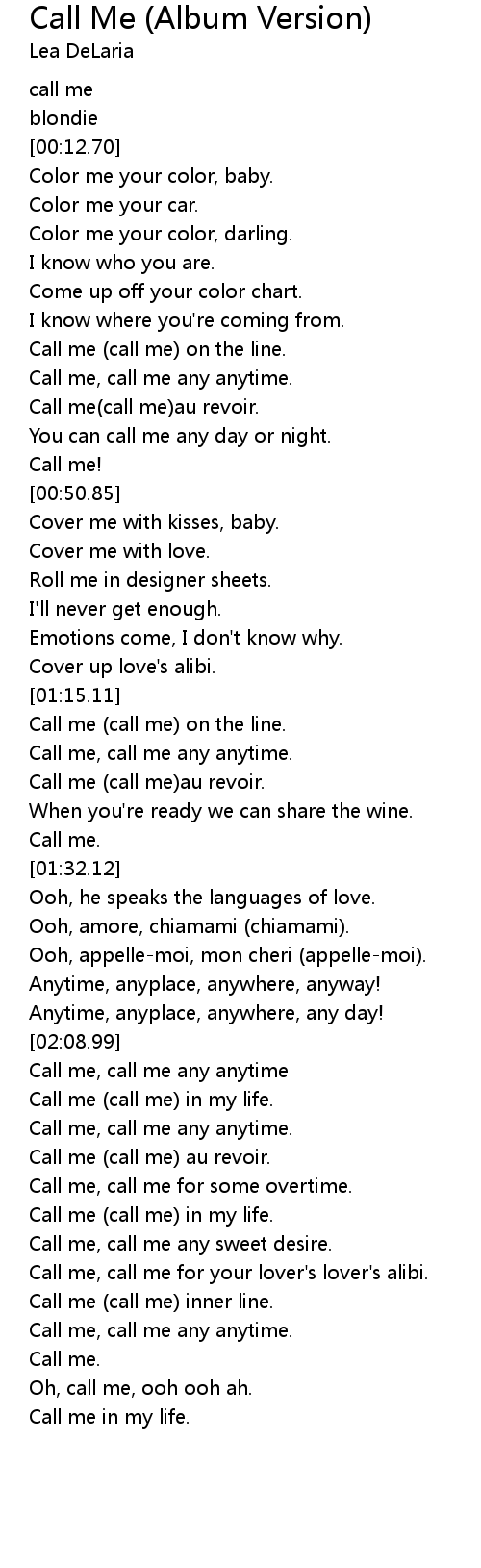Call me, call me any anytime |
