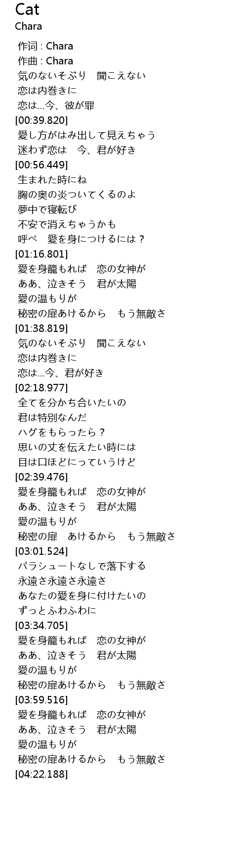 | [00:00.000] | 作词 : Chara |