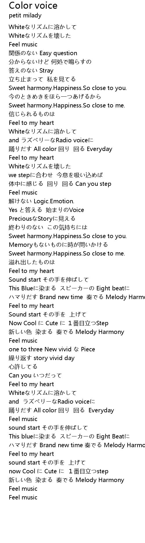 | [02:53.226] | 新しい色 染まる 奏でる Melody Harmony |