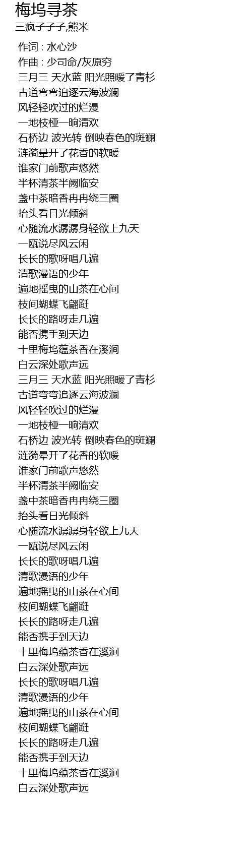 | [03:44.281] | 十里梅坞蕴茶香在溪涧 |