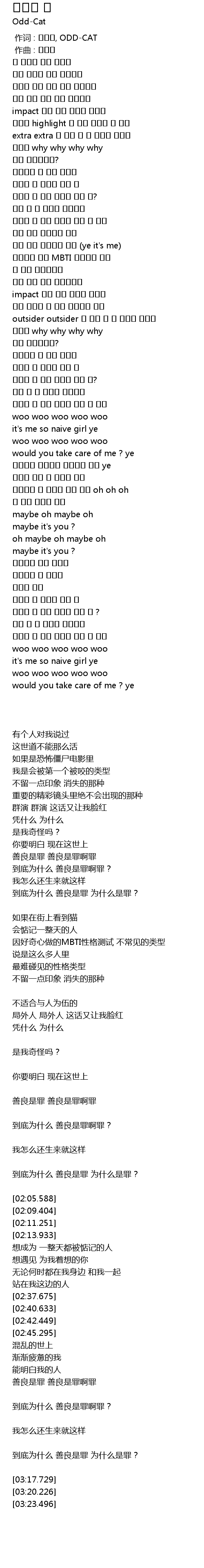 | [00:00.000] | 作词 : 코랑이, ODD-CAT |
