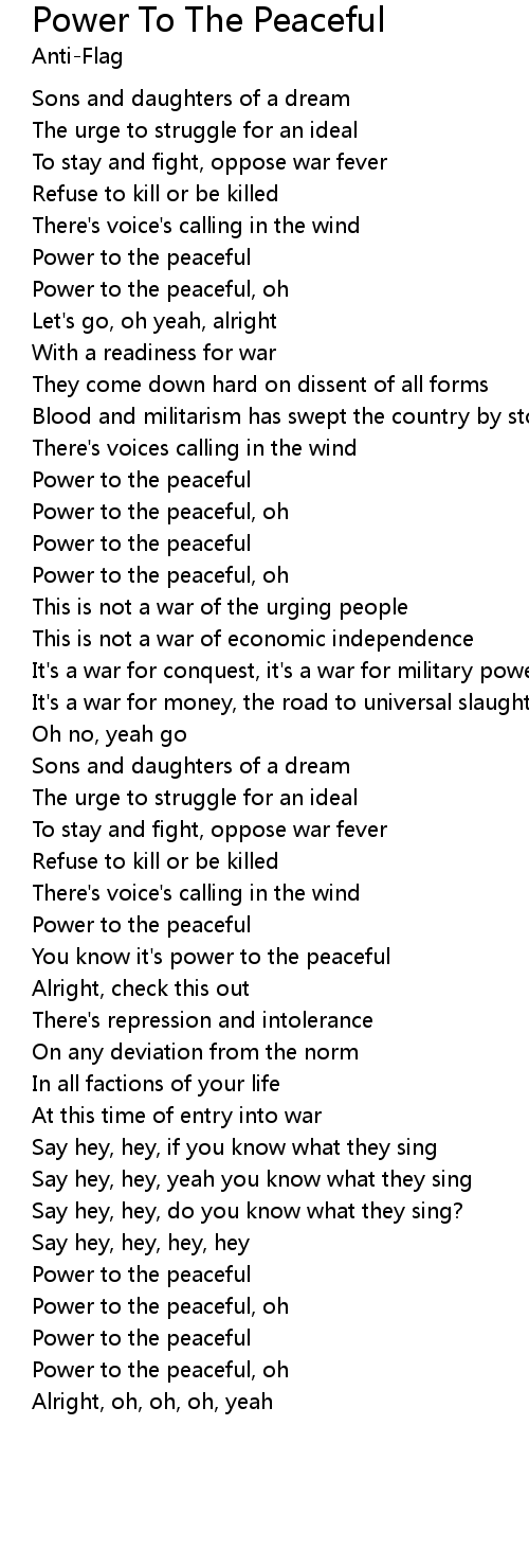 Power to the peaceful, oh