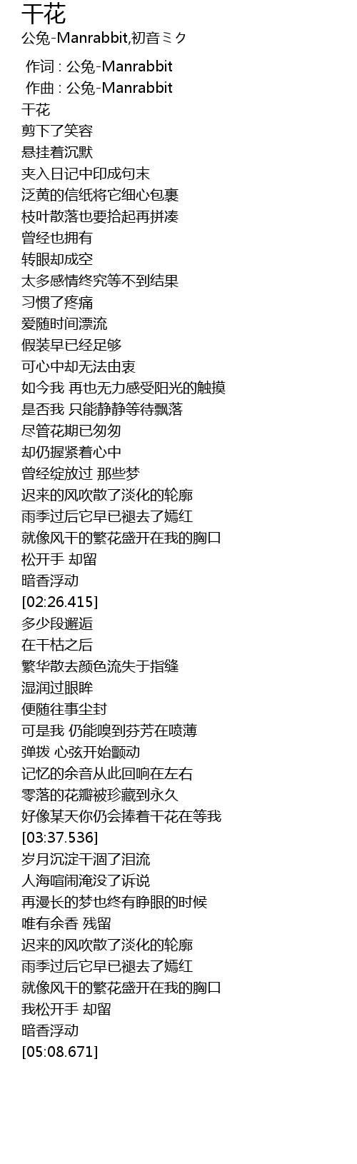 | [00:00.000] | 作词 : 公兔-Manrabbit |