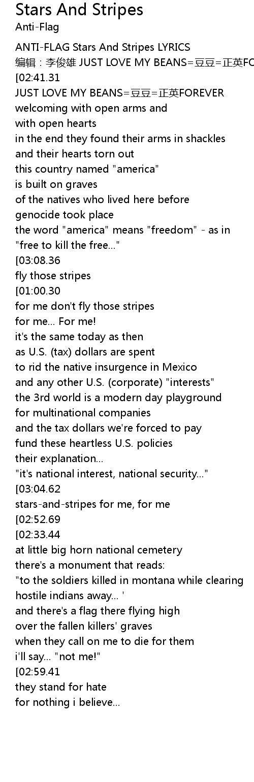 | [00:01.13] | ANTI-FLAG Stars And Stripes LYRICS |