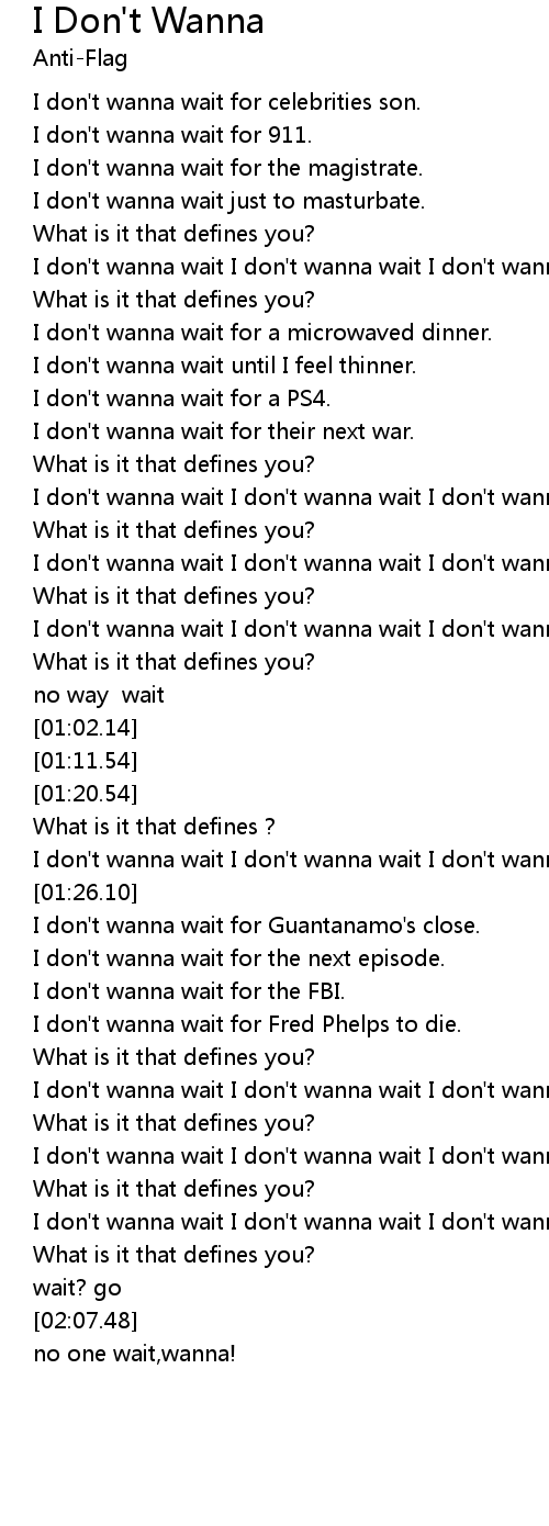 | [01:51.61] | I don' t wanna wait I don' t wanna wait I don' t wanna |