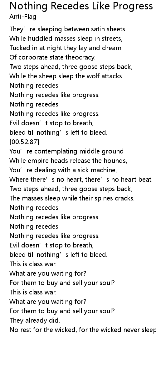 | [01:20.70] | Nothing recedes like progress. |