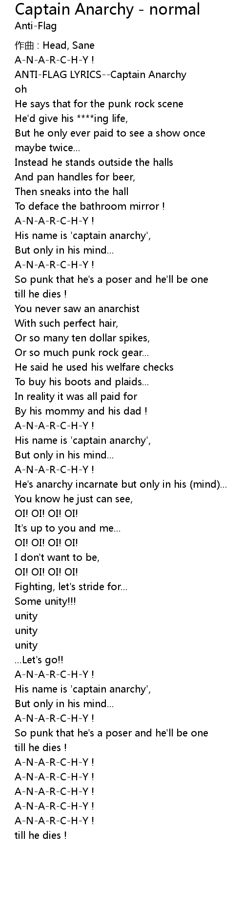 | ANTI-FLAG LYRICS--Captain Anarchy | |