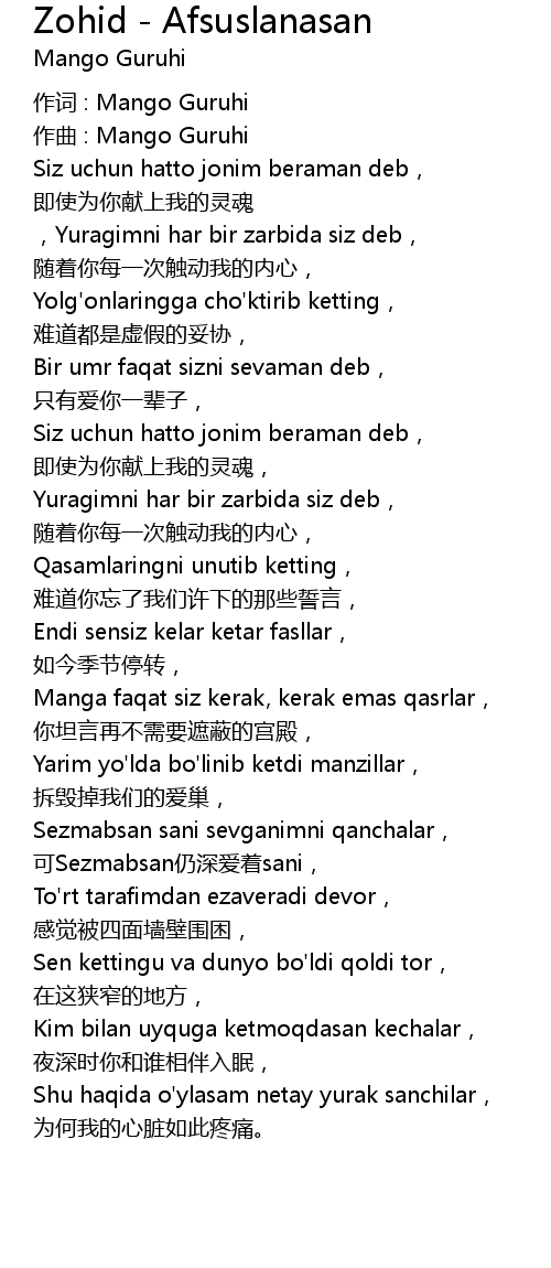 | Shu haqida o' ylasam netay yurak sanchilar, | |