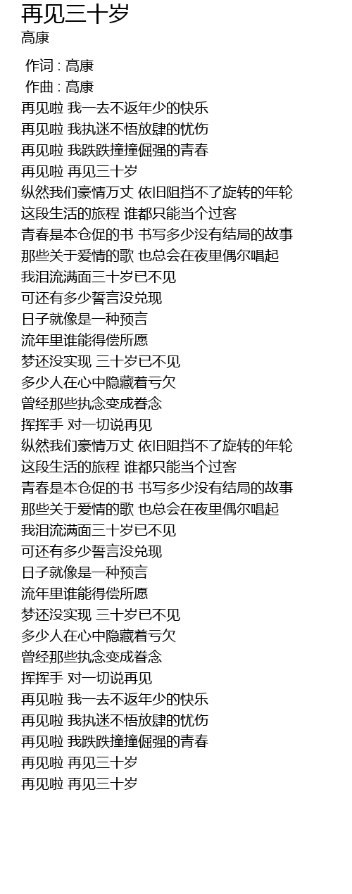 | [03:00.433] | 梦还没实现 三十岁已不见 |