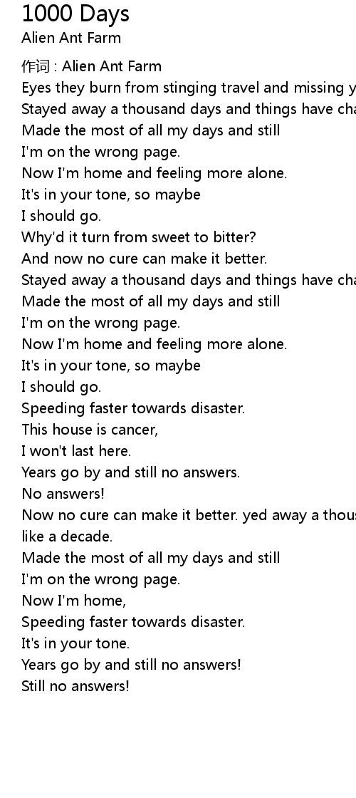 | Now no cure can make it better. yed away a thousand days and things have changed like a decade. | |