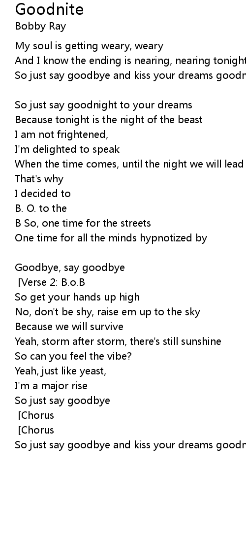 So just say goodbye and kiss your dreams goodnight [Verse 1: B.o.B.] |