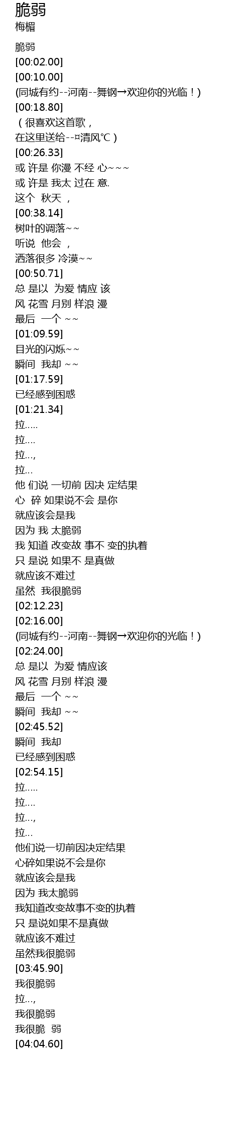 | [04:01.38] | 我很脆 弱 |