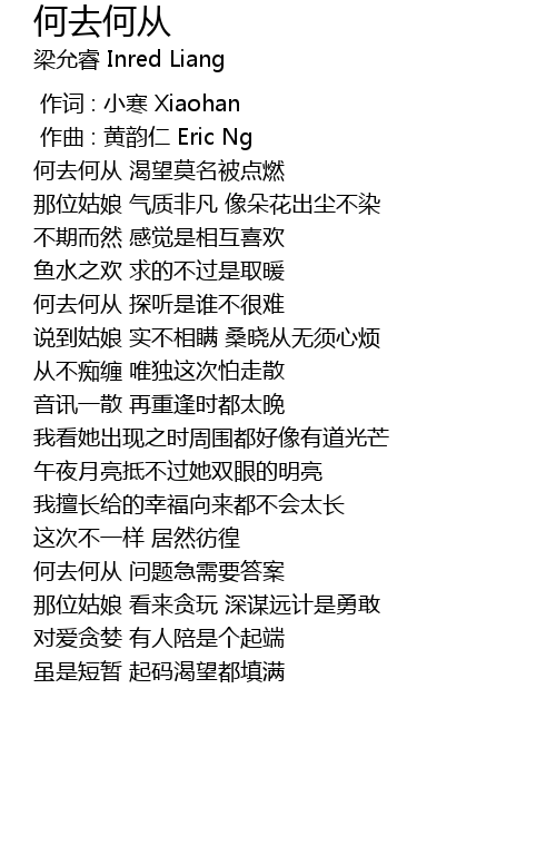 | [00:01.000] | zuò qǔ : huáng yùn rén Eric Ng |