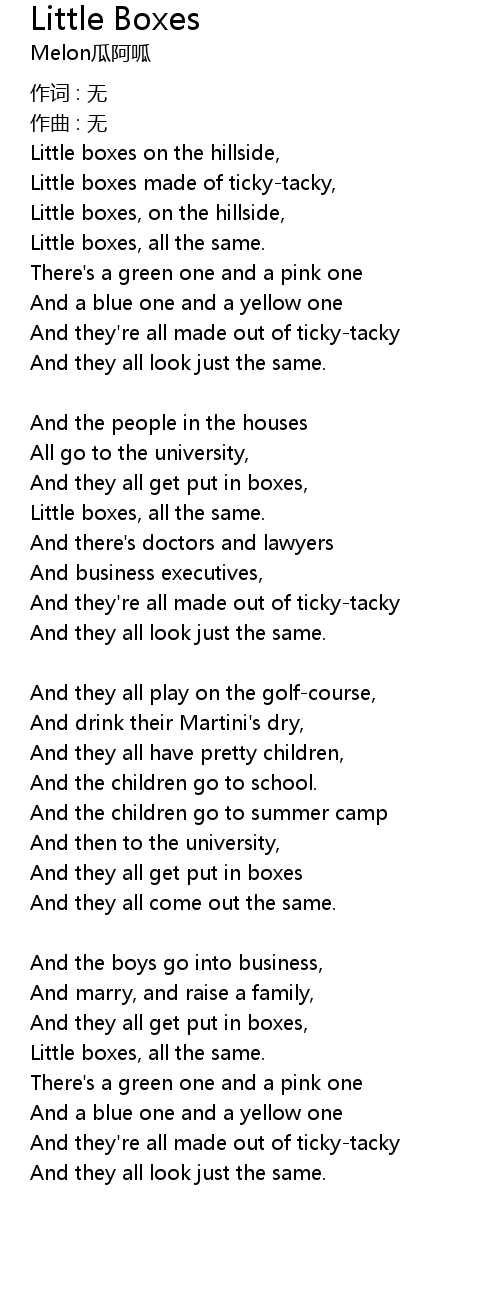 | Little boxes made of tickytacky, | |