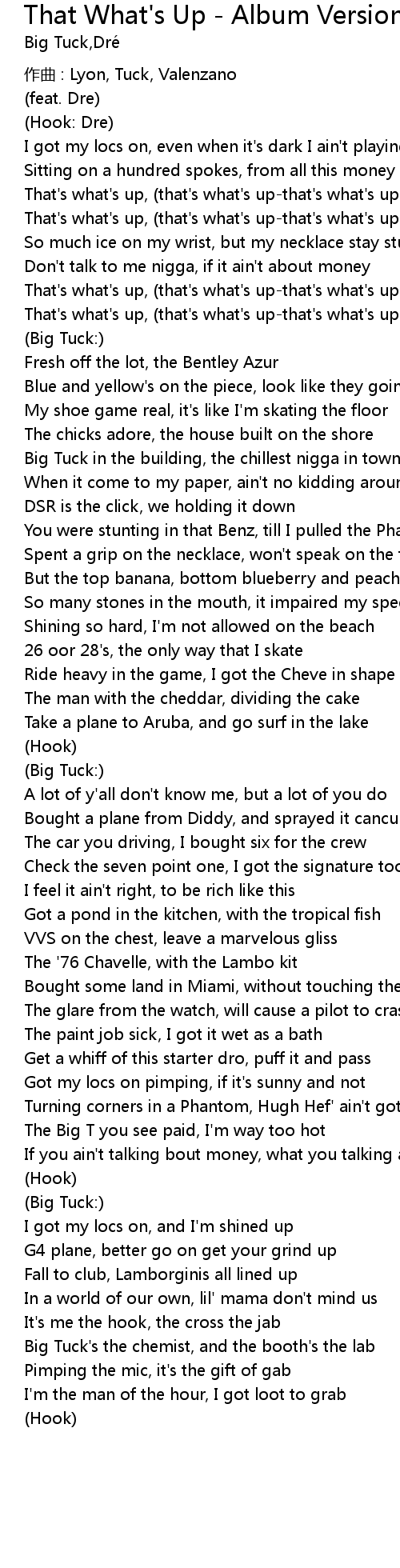 | That's what's up, (that's what's up-that's what's up-that's what's up) | |