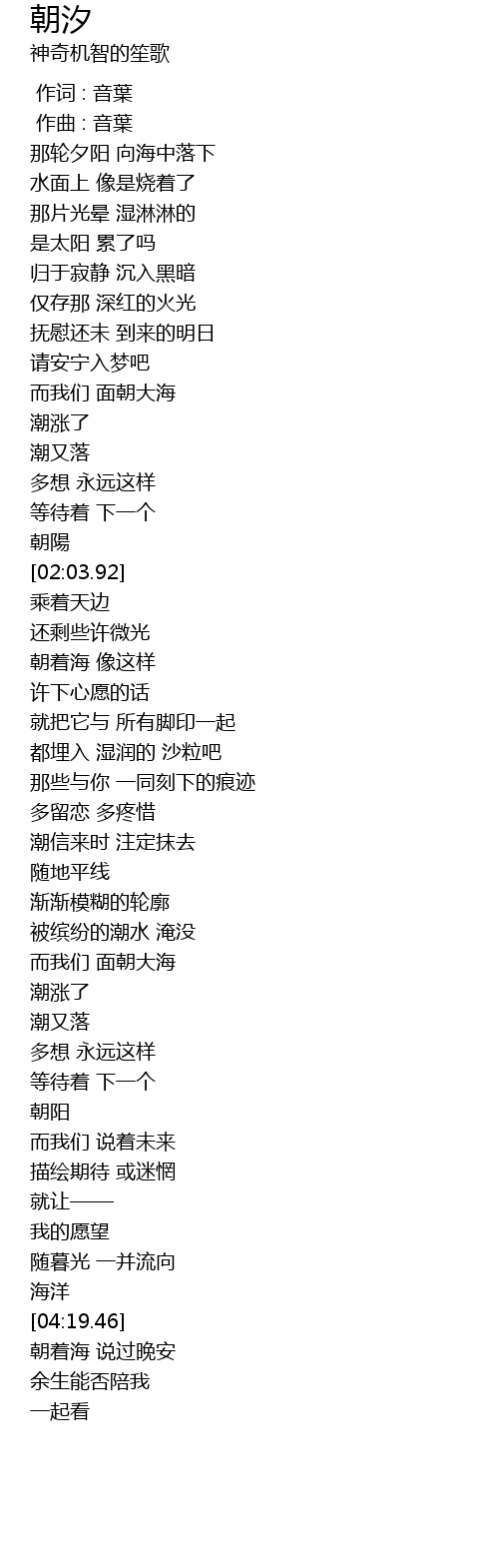 | [04:29.20] | cháo zhe hǎi shuō guò wǎn ān |