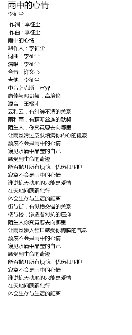 | [01:30.437] | 寂寞不会是雨中的心情 |