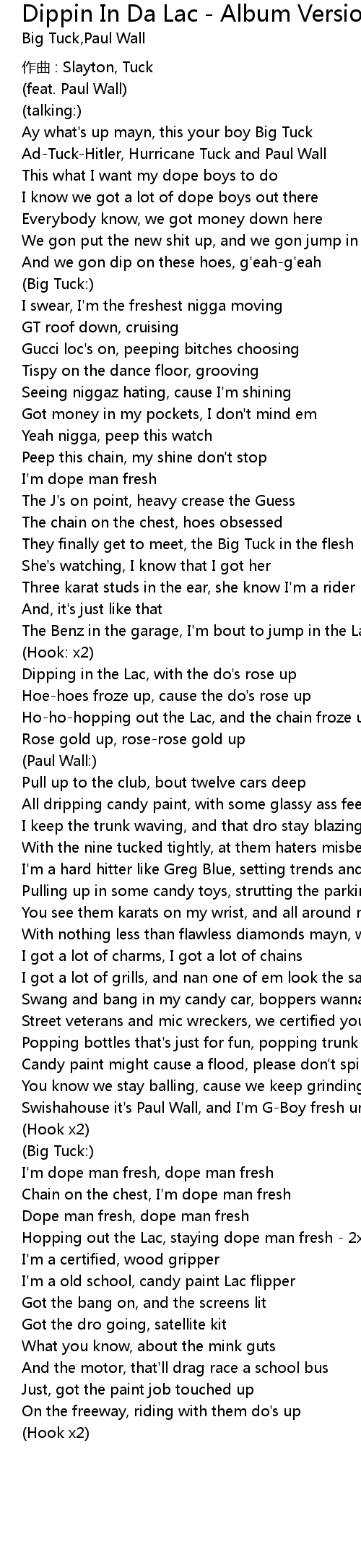 | Hopping out the Lac, staying dope man fresh - 2x | |