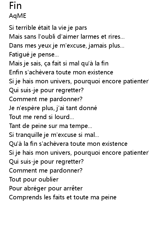 | Qu'a la fin s' ache vera toute mon existence | |