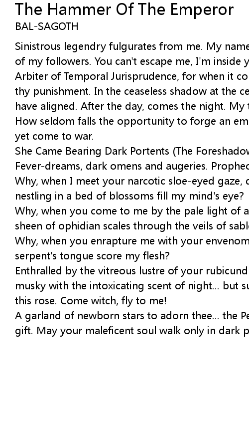 Sinistrous legendry fulgurates from me. My name is a word of power on the lips of my followers. You can't escape me, I'm inside your mind. Beware the Grand Arbiter of Temporal Jurisprudence, for when it comes at last, terrible shall be thy punishment. In the ceaseless shadow at the centre of infinity, the spheres have aligned. After the day, comes the night. My time has come. |