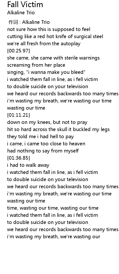 | [00:00.00] | zuò cí : Alkaline Trio |