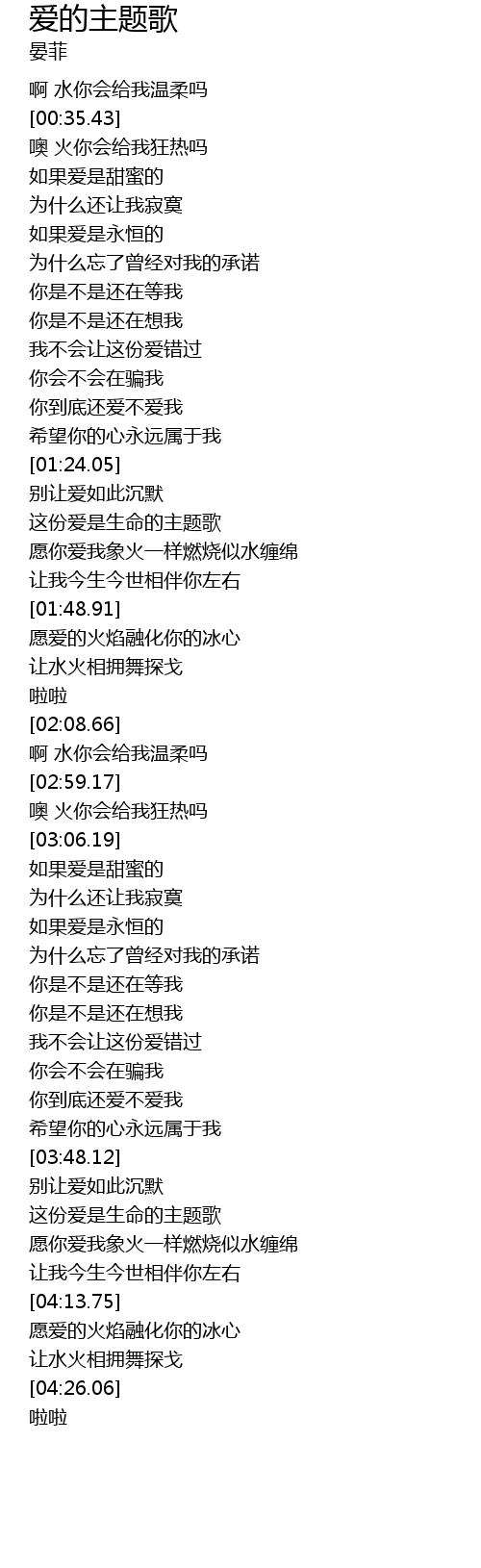 | [03:54.94] | zhe fen ai shi sheng ming de zhu ti ge |