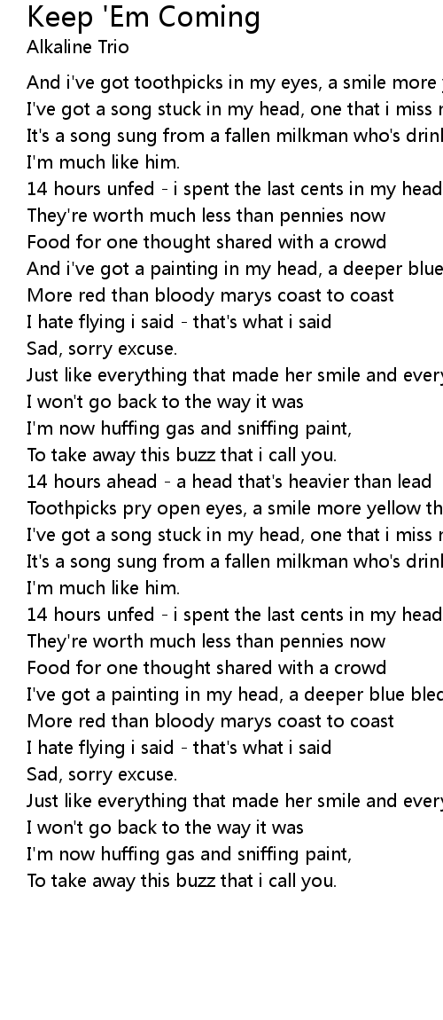 And i've got toothpicks in my eyes, a smile more yellow than the sky |
