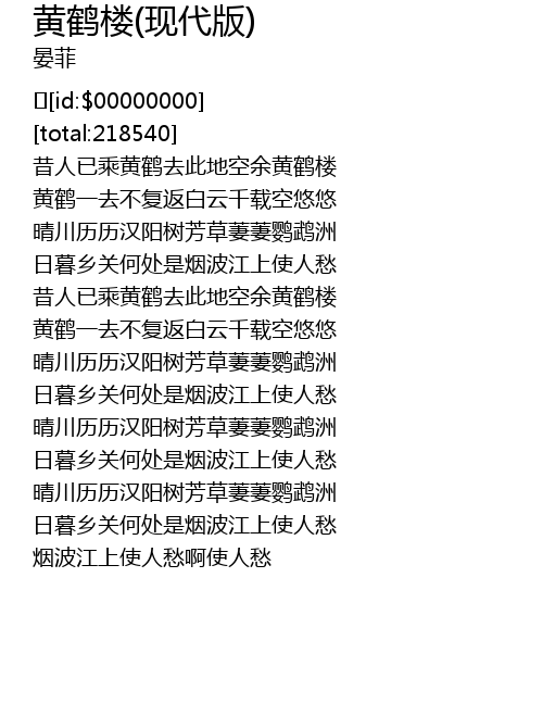 | [01:42.690] | 昔人已乘黄鹤去此地空余黄鹤楼 |