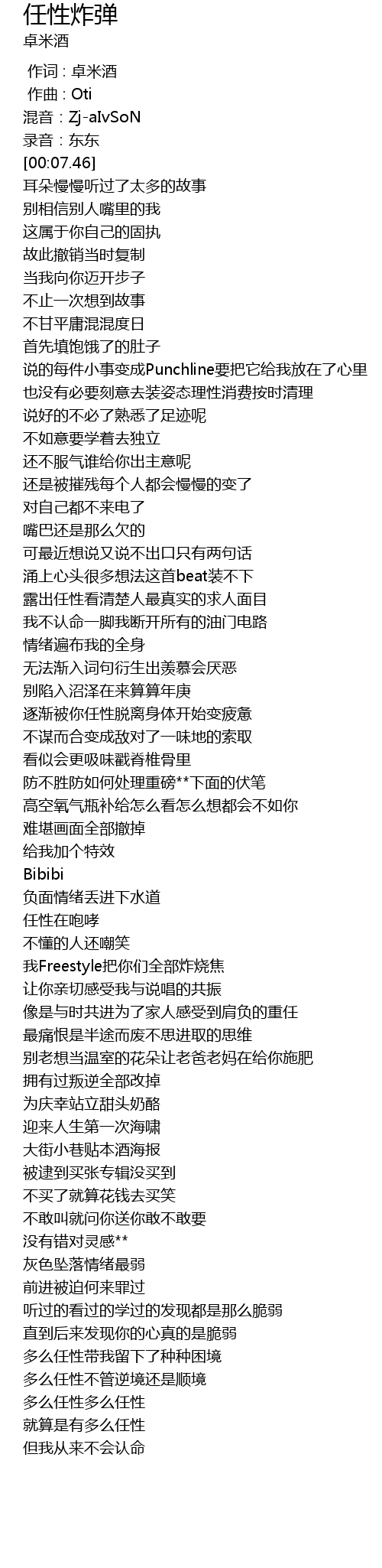 | [00:36.51] | 说的每件小事变成Punchline要把它给我放在了心里 |