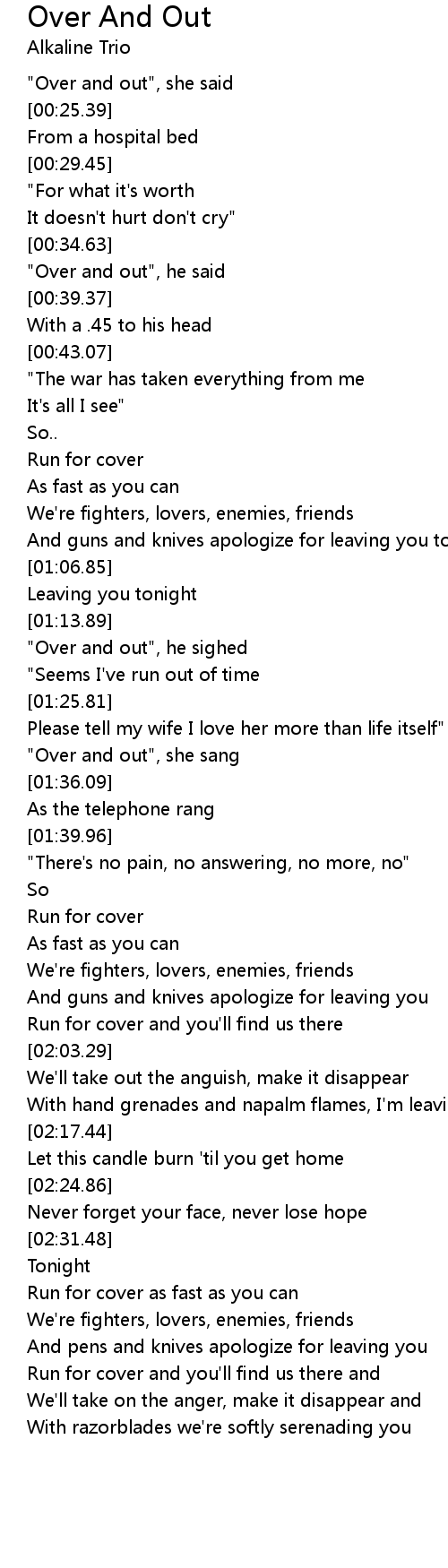 Run for cover and you'll find us there and |