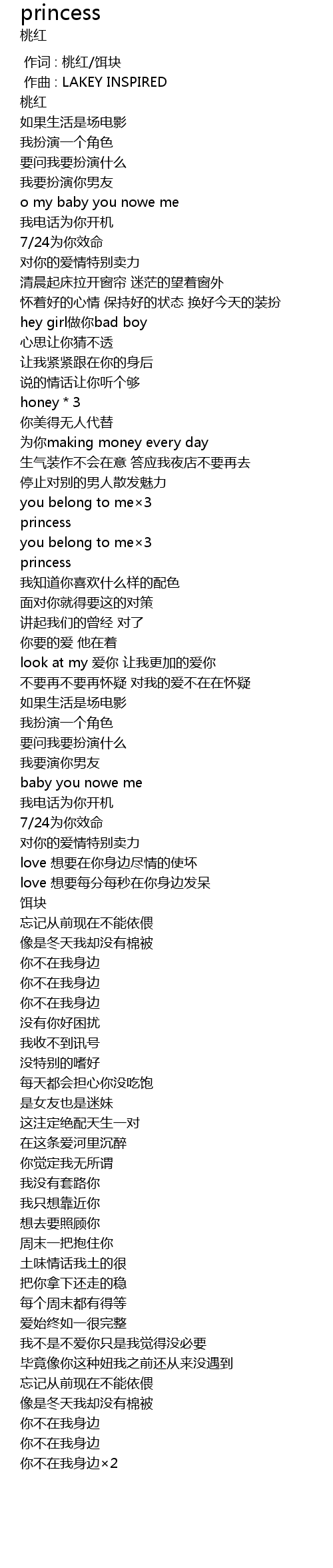 | [00:00.000] | 作词 : 桃红/饵块 |