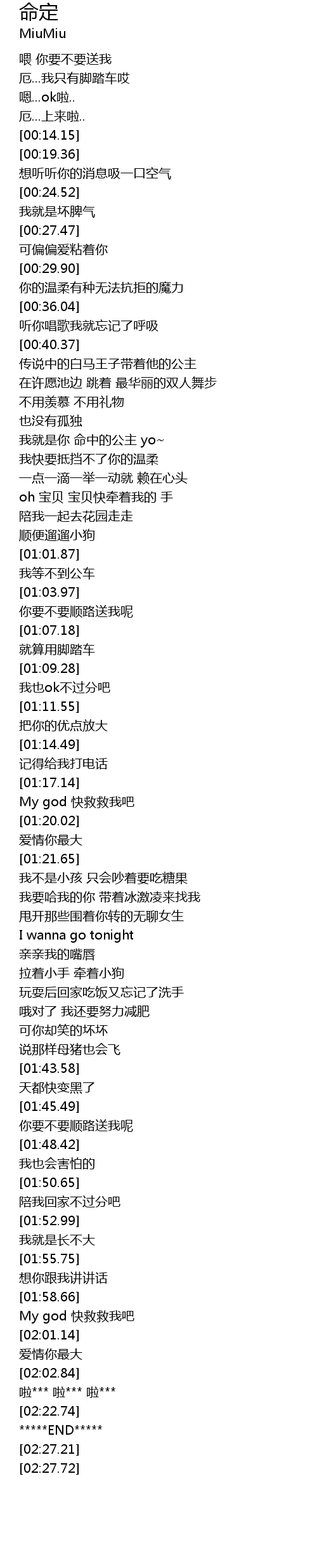 | [00:49.58] | 我就是你 命中的公主 yo~ |