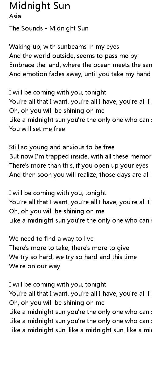 | Like a midnight sun, like a midnight sun, like a midnight sun |