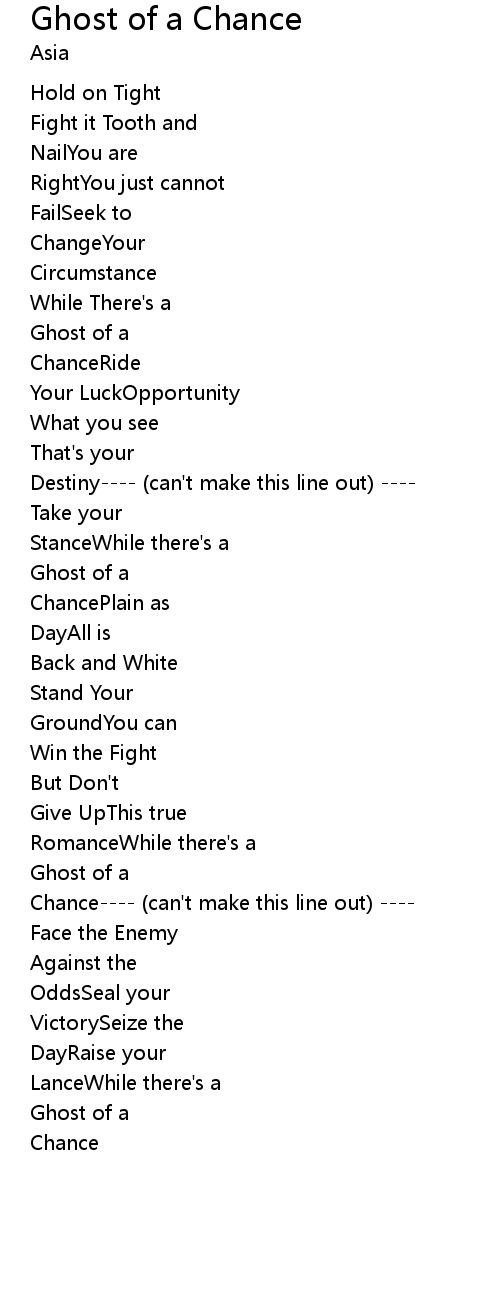 | Chance---- (can't make this line out) ---- | |
