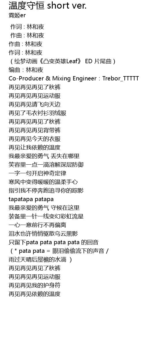 | [00:02.464] | (绘梦动画《凸变英雄Leaf》 ED 片尾曲) |
