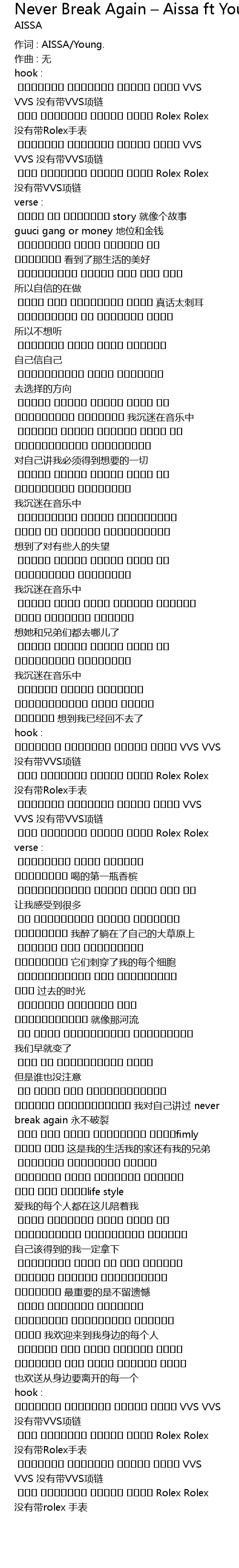 | wo dui zi ji jiang guo never break again yong bu po lie | |