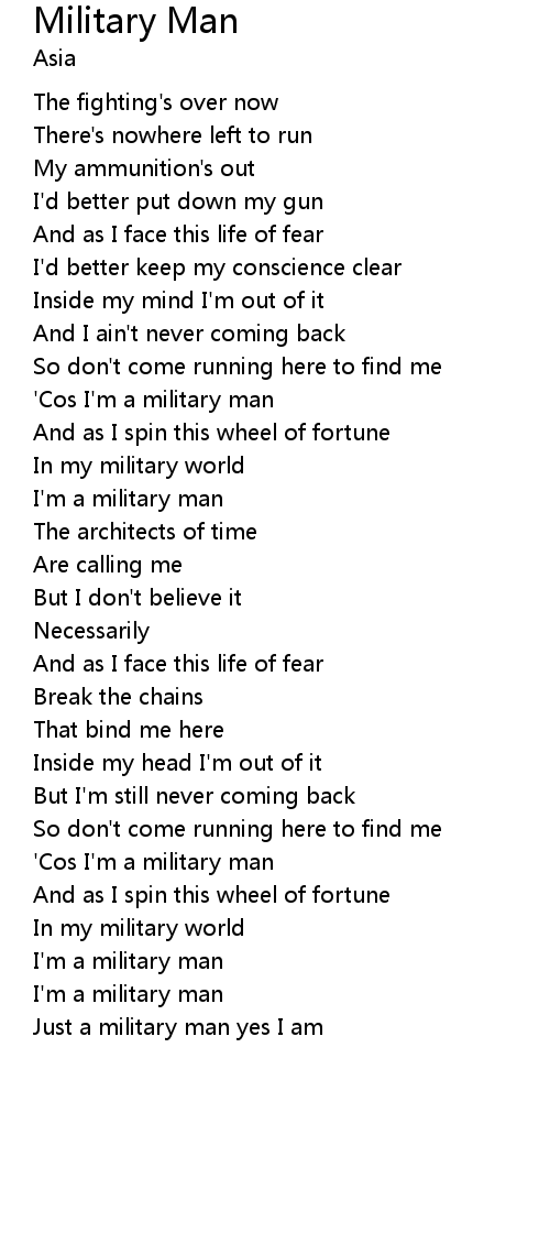 | Just a military man yes I am |