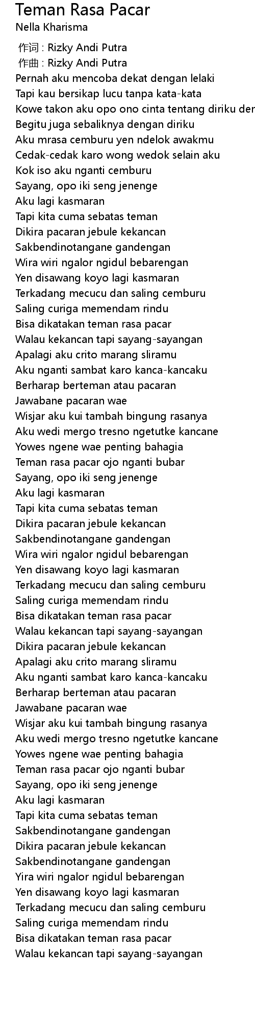 | [00:00.000] | 作词 : Rizky Andi Putra |