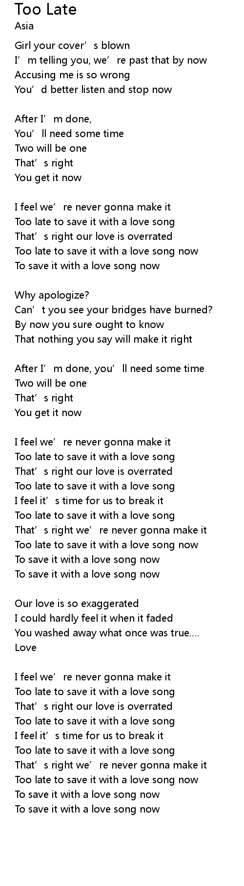 | Too late to save it with a love song | |