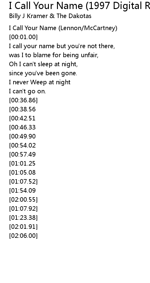 [00:00.00] I Call Your Name (Lennon/McCartney)