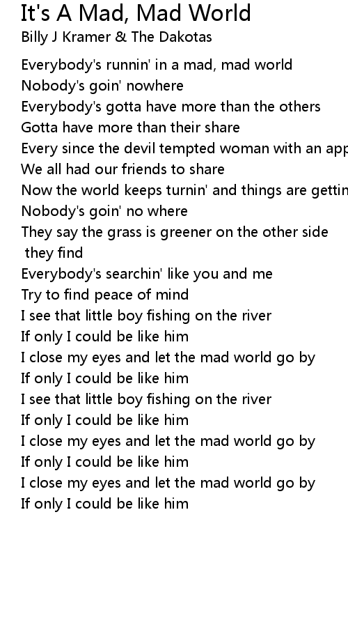 Everybody's runnin' in a mad, mad world |