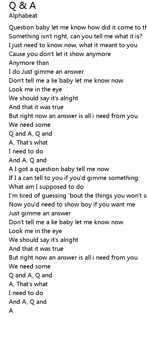 A I got a question baby tell me now |