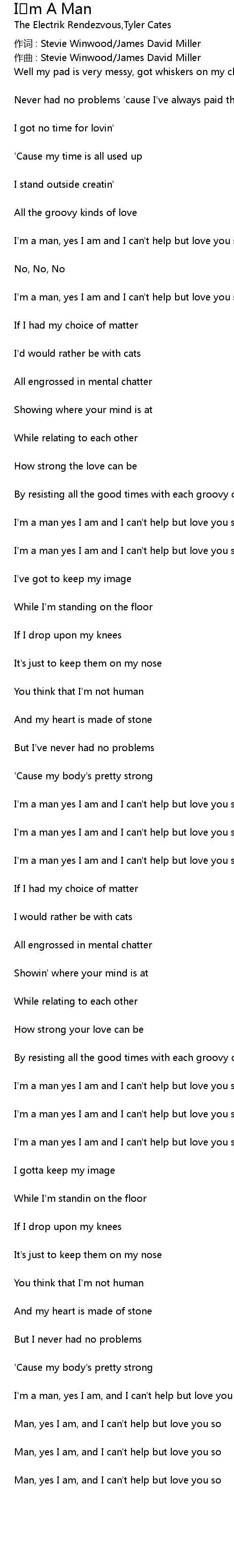 | I' m a man, yes I am, and I can' t help but love you so | |