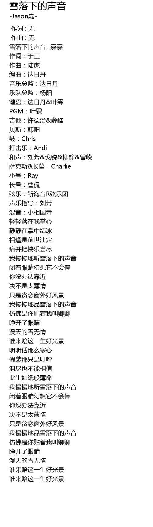 | [00:02.177] | 雪落下的声音- 嘉嘉 |