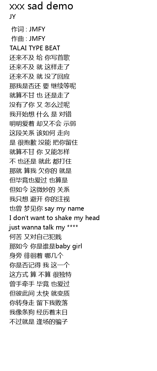 | [00:00.000] | 作词 : JMFY |